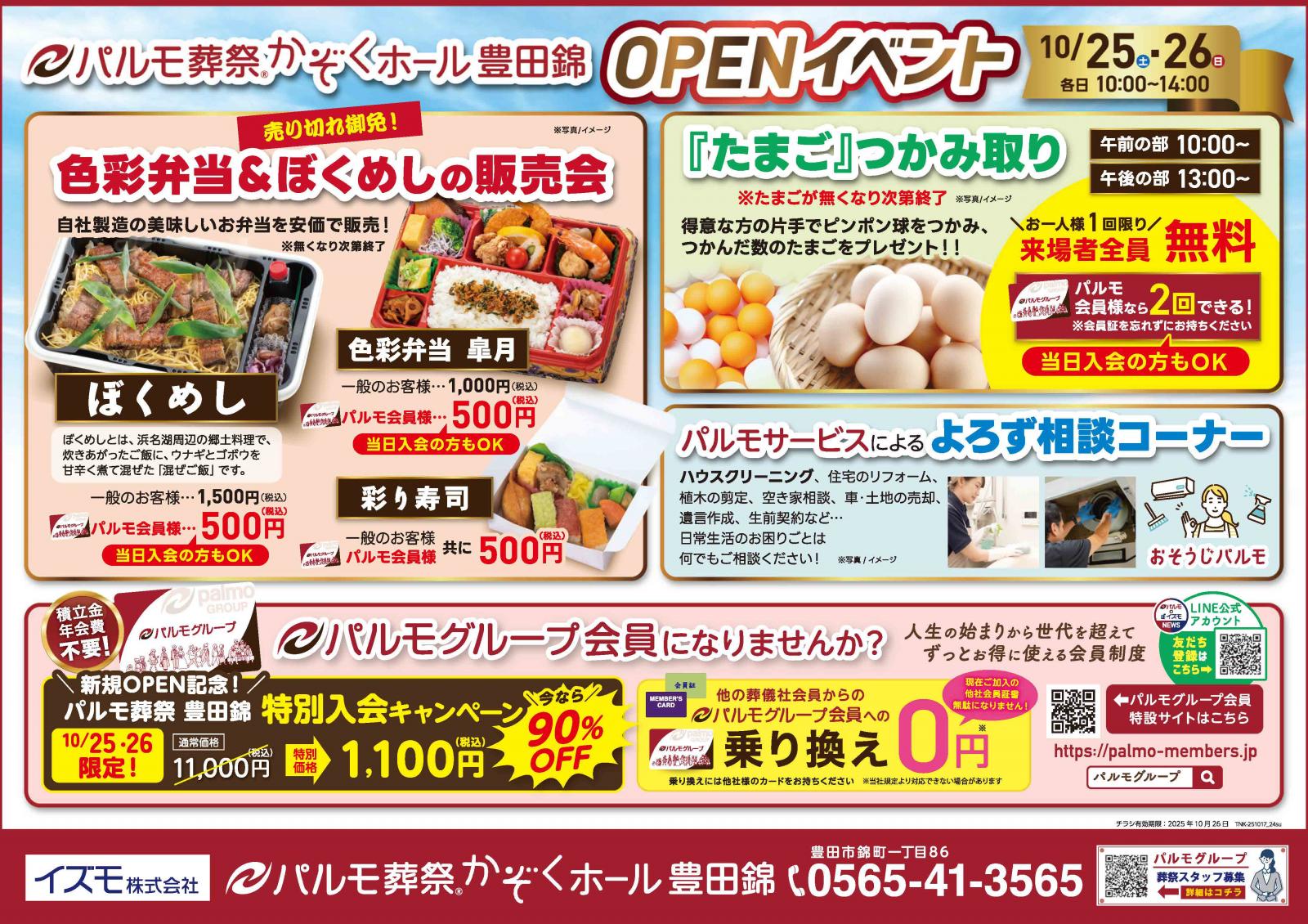パルモ葬祭 豊田錦 OPENイベント開催中です。