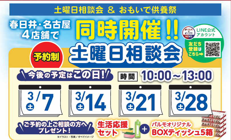 下記の日程にて相談会を実施しておりますので、お気軽に