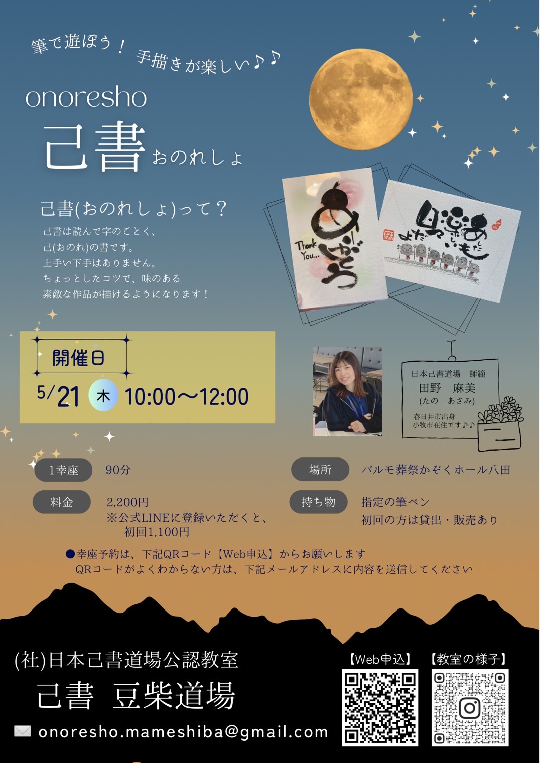 5月21日 筆で遊ぼう!手書きが楽しい! 己書 講座あります