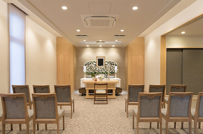 飲食店やコンビニにも近く、便利にご利用いただける家族葬専用ホール
